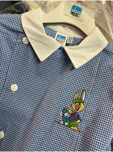 favorite_border Aggiungi alla Wishlist Quick view visibility Vedi Siggi Grembiule Celeste a quadretti per bambino Siggi con rabbit asilo 5anni + omaggio Prezzo 16,90 € Grembiule Siggi a quadretti bianco e azzurro per bambino, scuola materna, asilo