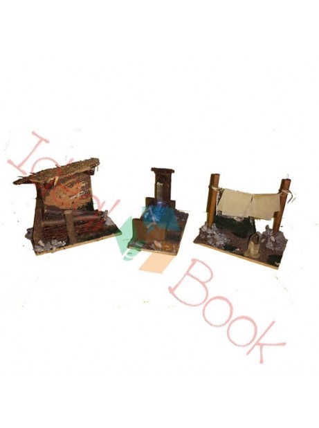 Accessori Presepe in legno Fontana Bancarella Panni stesi 10x9x4,5