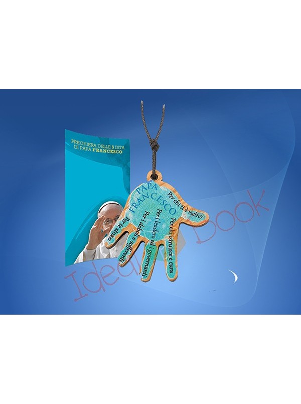 Portachiavi in legno Forma mano con preghiera delle 5 dita Papa Francesco