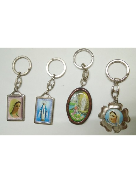 Portachiavi Madonna Lourdes - Medugorje - Immacolata in metallo e legno