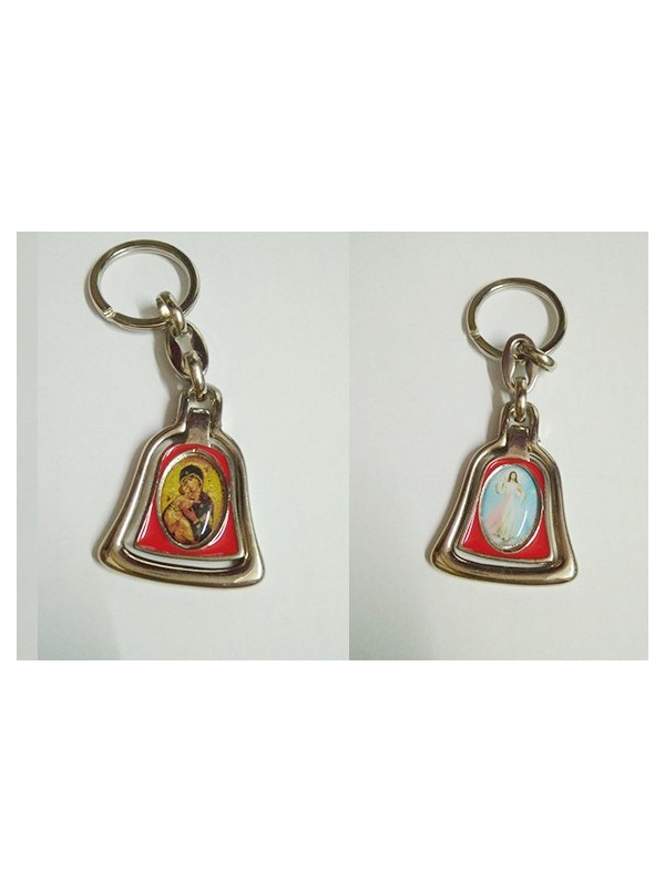 Portachiavi metallo Gesù Misericordioso e reto Madonna con Bambino