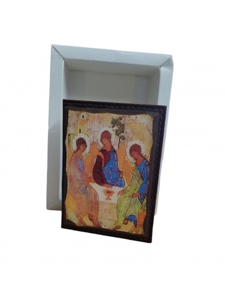 Idea regalo vangelo con copertina in ecopelle con SS Trinità in legno
