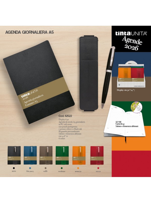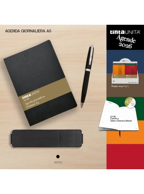 Agenda giornaliera 2026 TintaUnita con astuccio e penna abbinati