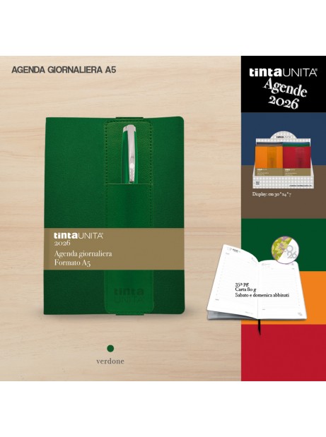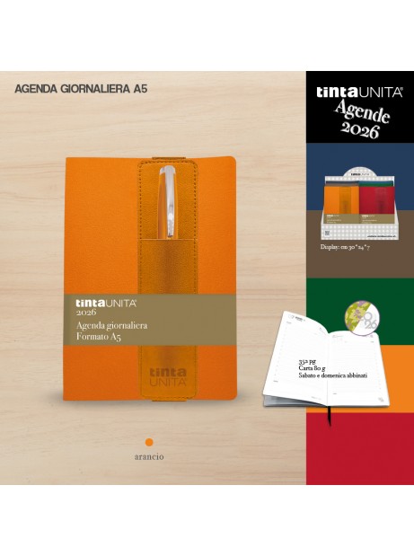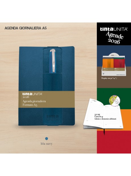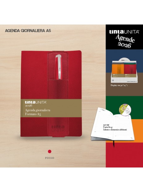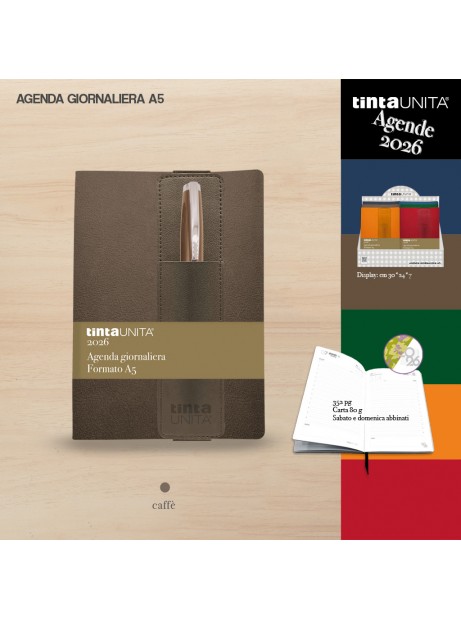 Agenda Giornaliera A5 con pouch portapenna Perfetta per chi cerca praticità e stile, l'Agenda da tavolo A5 giornaliera tintaUNITA 2026 è lo strumento ideale per organizzare ogni giornata con precisione.