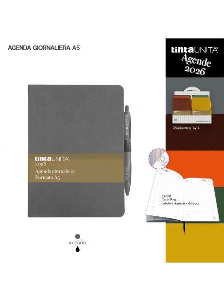 L'agenda tintaUNITA 2026 è l'alleata perfetta per chi desidera ordine, praticità e stile in ogni giornata, portando sulla scrivania un prodotto di qualità pensato per organizzare il tempo al meglio.