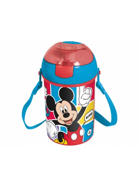 Borraccia Bambini Disney Mickey Mouse in Plastica con tracolla tappo e cannuccia
