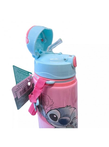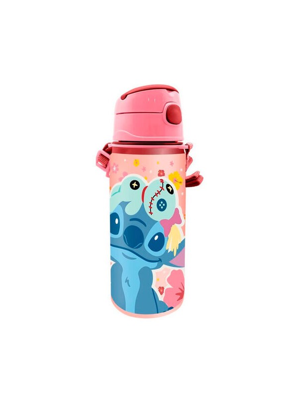 Borraccia Stitch con Tappo e cannuccia morbida, 600ml con tracolla regolabile