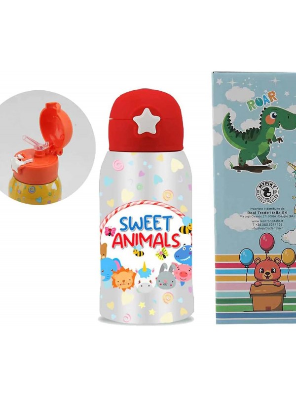 Borraccia Termica Baby con Cannuccia morbida e tappo, 500ml Dolci animali