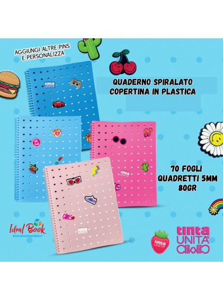 Quaderno A4 spirale 70 Fogli - Quadretti 5mm - 80gr TINTA UNITA Clik con 5 pins