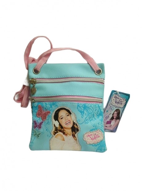 Borsa Violetta con Tracolla 2 Zip Azzurro/Rosa