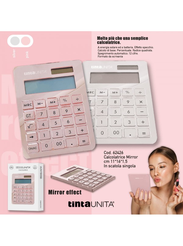 Calcolatrice TintaUnita Mirror, ideale per ufficio o per scrivania di casa.