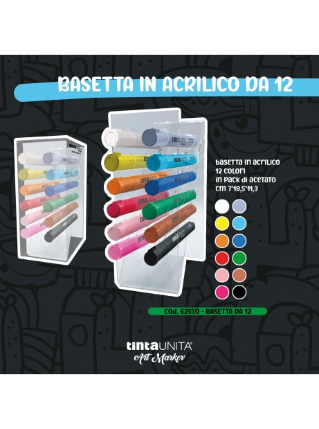 Base da tavolo in acrilico con 12 marker TintaUnita multi superficie coprenti