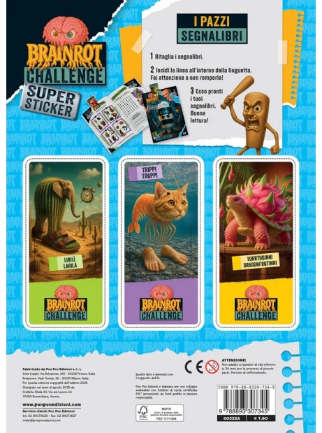 Scopri tante pagine di divertimento con il Super Sticker di Brainrot Challenge! Giochi, attività ed enigmi da risolvere prima che finisca il tempo, in compagnia dei folli personaggi dell'universo Brainrot. Un adrenalinico activity book con inclusi più di 100 sticker da attaccare dove vuoi tu!