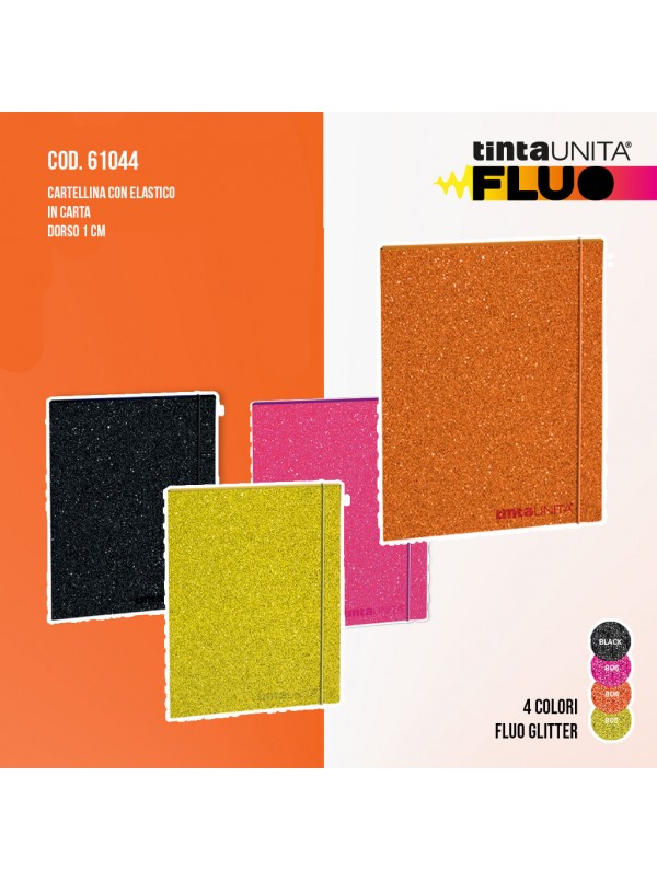 Cartellina con elastico dorso 1cm glitter Tinta Unita Fluo