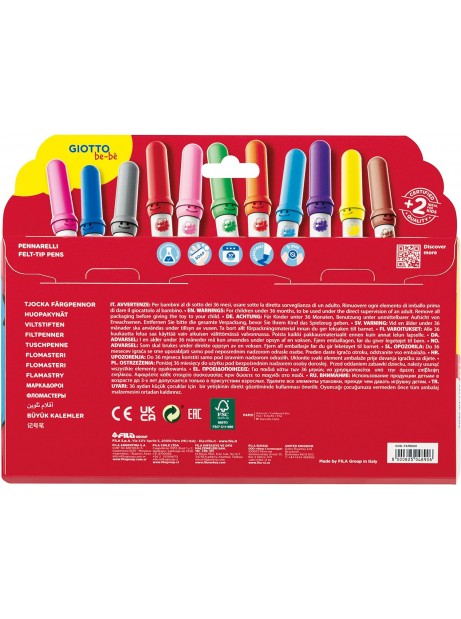 Super pennarelli GIOTTO Be-bè - Astuccio 18 Colori 466600 - Atossici e superlavabili Bebe'