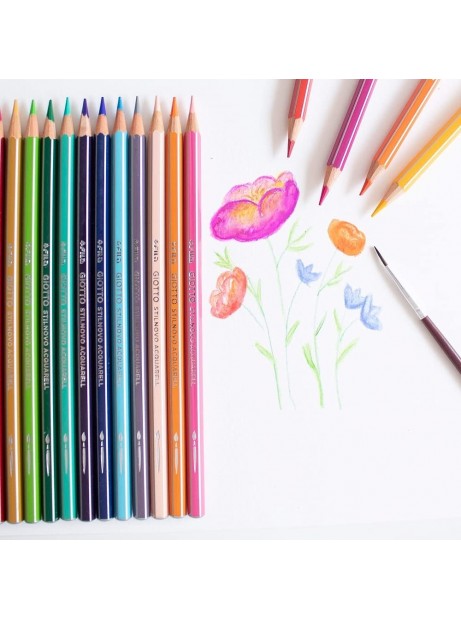 Pastelli acquarellabili Giotto Stilnovo confezione da 12 colori, usali come semplici colori a matita e poi divertiti a sfumare le tonalità con il pennello.
