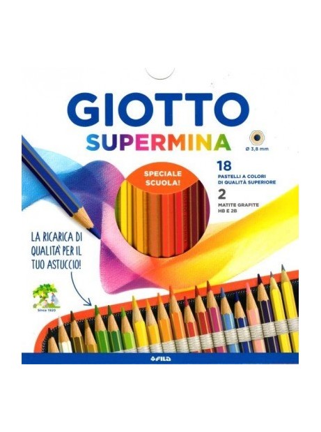 Pastelli Giotto Supermina da 18 pz Colori a matita MINA 3,8 mm ricarica astuccio