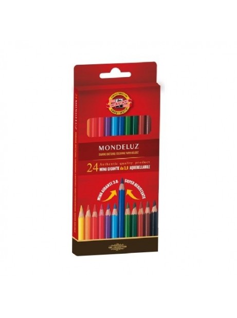 Pastelli acquarellabili 24 pz Mondeluz Koh-I-Noor con mina gigante 3,8 mm