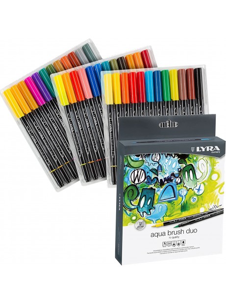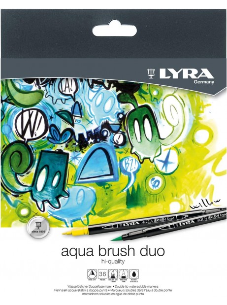 LYRA AQUA BRUSH DUO, Astuccio in Cartone da 36 Pennarelli Acquerellabili in colori Assortiti a doppia punta.