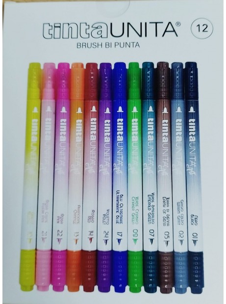 Pacco da 12 Brush Pen doppia punta TintaUnita