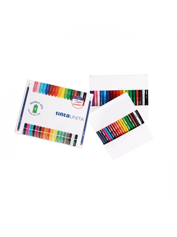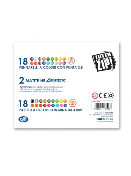 Kit per ricaricare il tuo Astuccio 3zip, cancelleria TintaUnita con 18 pastelli a matita, 18 colori a spirito e 2 matite