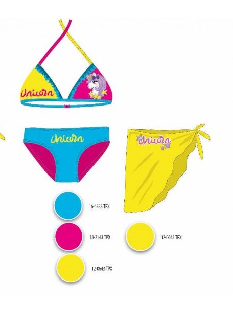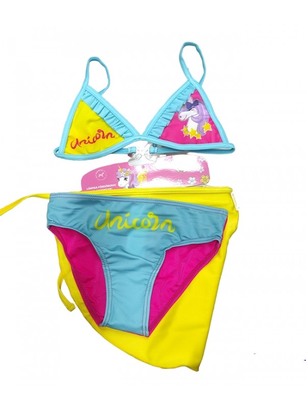 Costume da Bagno Unicorno Bikini a Triangolo 2 pezzi + pareo Bambina
