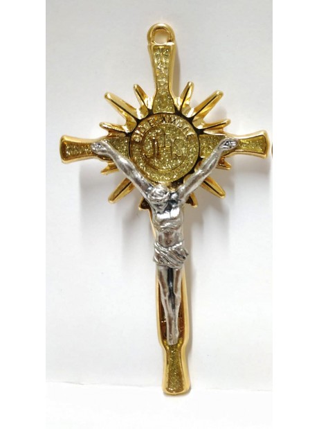 Crocifisso in metallo dorato, Cristo argento Croce con raggi JHS 13cm
