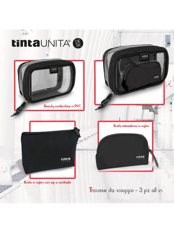 Trousse completa da viaggio, con 3 soluzioni contentive di diverse dimensione, porta con te tutto il necessario, TintaUnita Desk