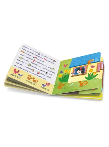 Sulle pagine del libro cartonato, la storia di Biancaneve è narrata con testi semplificati e, grazie all'aggiunta di parole illustrate, i bambini osservano e riconoscono le immagini attraverso l'associazione verbo-iconica, imparando così a nominare le parole delle fiabe.