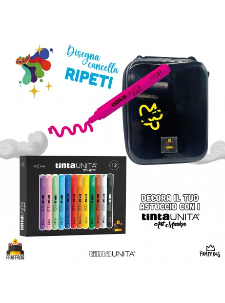 Astuccio Maxi OneTime Fraffrog e TintaUnita con pastelli, brushpen e in omaggio 12 ArtMarker