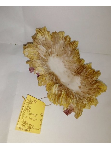 Statua Gesù Bambino con culla in resina e stoffa dipinta a mano