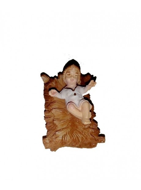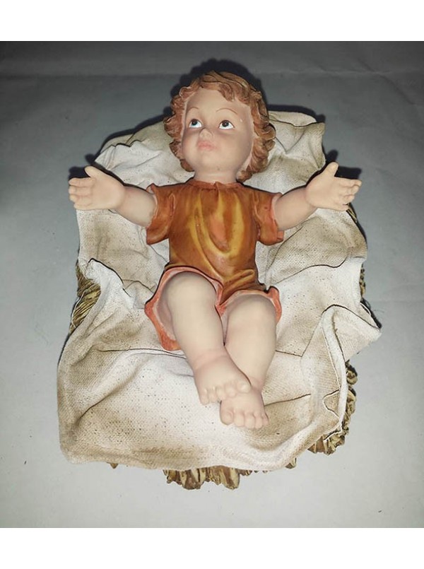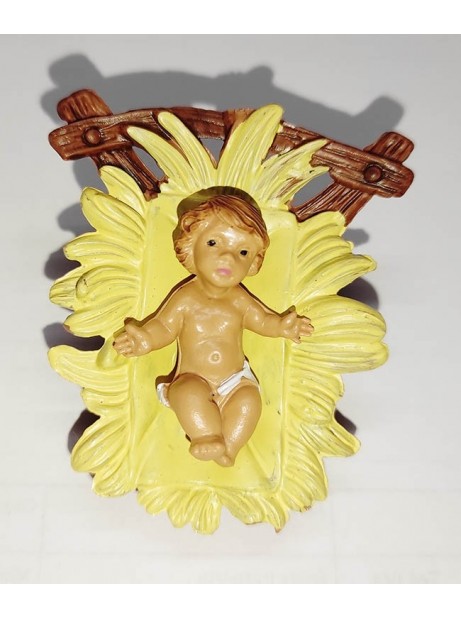 Gesu' bambino con culla in resina e stoffa 15x11lx10h