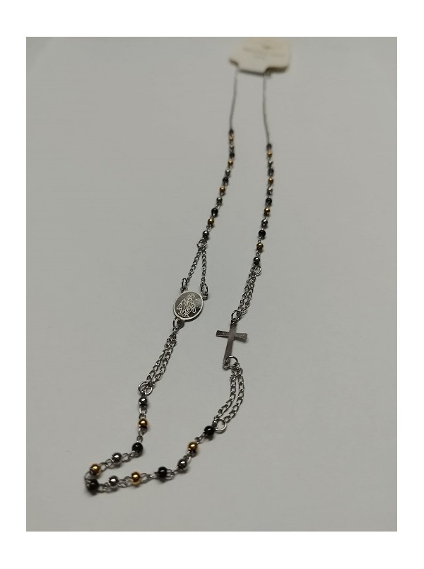 Collana in acciaio con medaglie Madonna Miracolosa croci e grani rosario