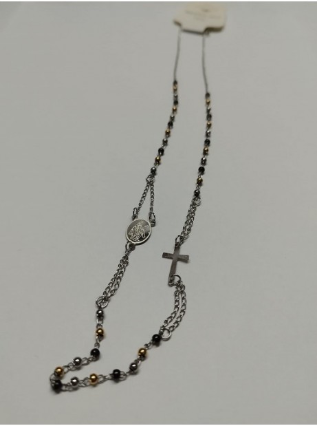 Medaglia con Madonna Miracolosa, Croce e grani neri, silver e dorati
