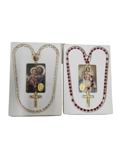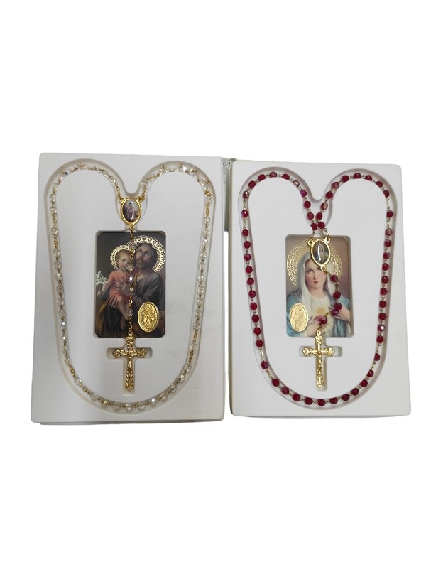 Coroncina rosario Pietre colorate rosse e trasparente c/ pendente croce