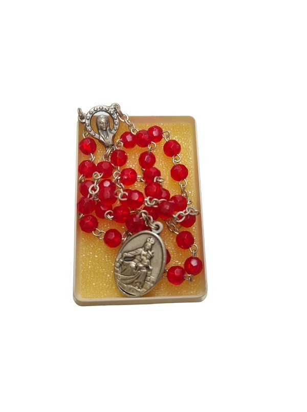 Coroncina Rosario Sacro Cuore con grani di perla rossi