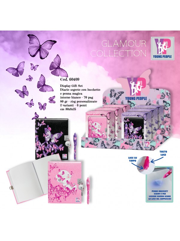 Diario segreto + penna magica Tinta Unita Glamour 2023 3D Glitter regalo