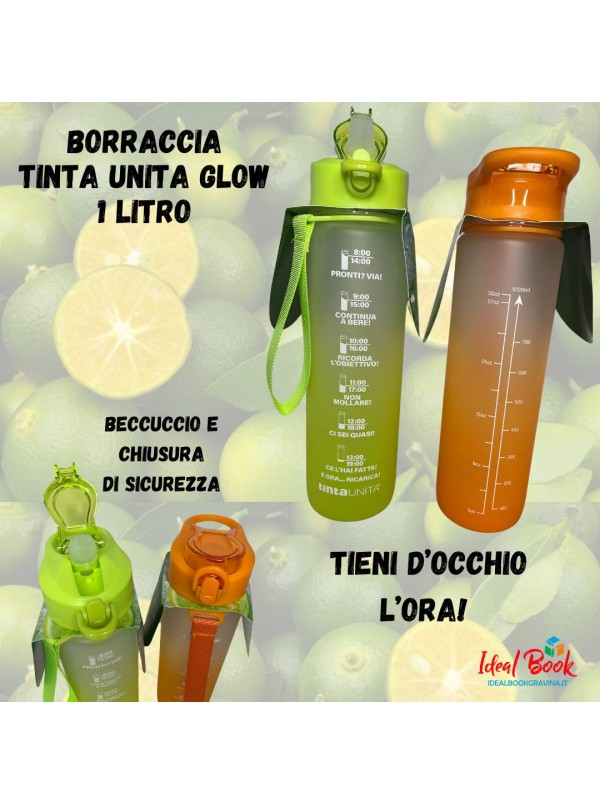 Borraccia Motivazionale da 1L TintaUnita Glow in Tritan con cannuccia