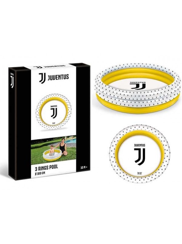 Piscina a 3 anelli con diametro da 1 metro, fondo giallo e anelli bianchi con logo Juventus.