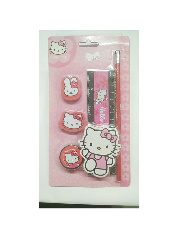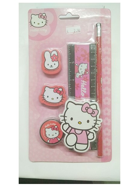 Kit Hello Kitty Cancelleria 2 gomme temperino righello matita calamita