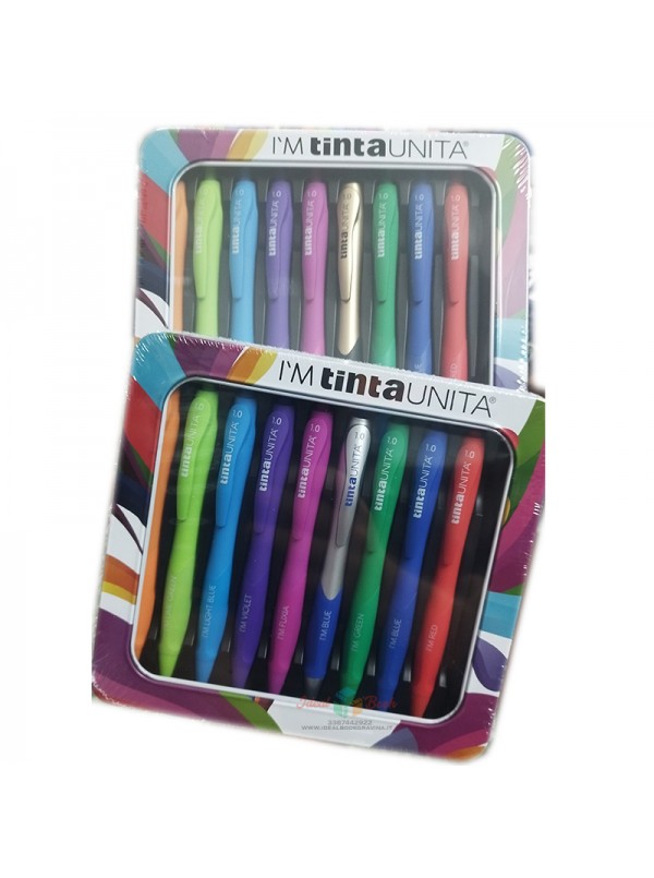 Metal Box con 10 Penne a scatto 1.0 colorate I'M TintaUnita + gold o silver