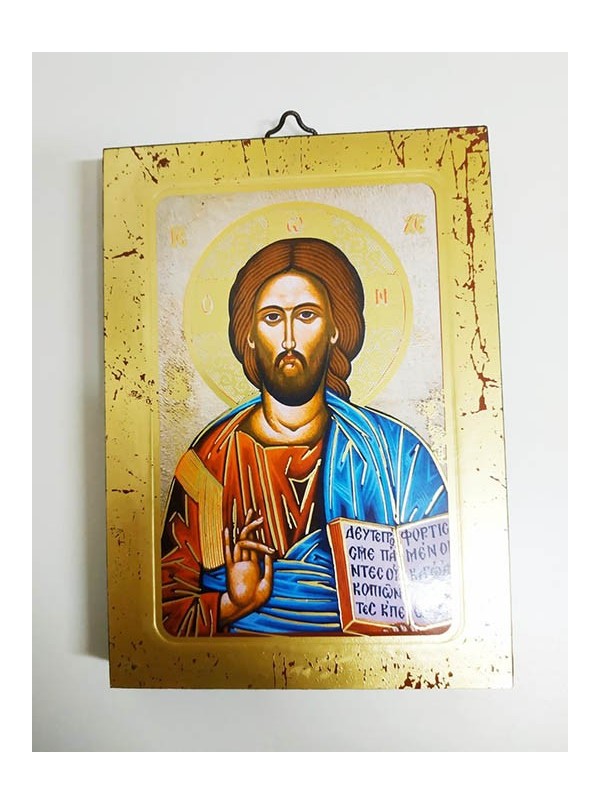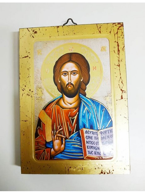 Icona Gesù Maesto Litografata con oro a Caldo - Realizzata su Legno a massello - Lavorata a mano