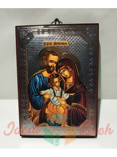 Icona Sacra Famiglia in Legno Stile Bizantino argentato con part. oro