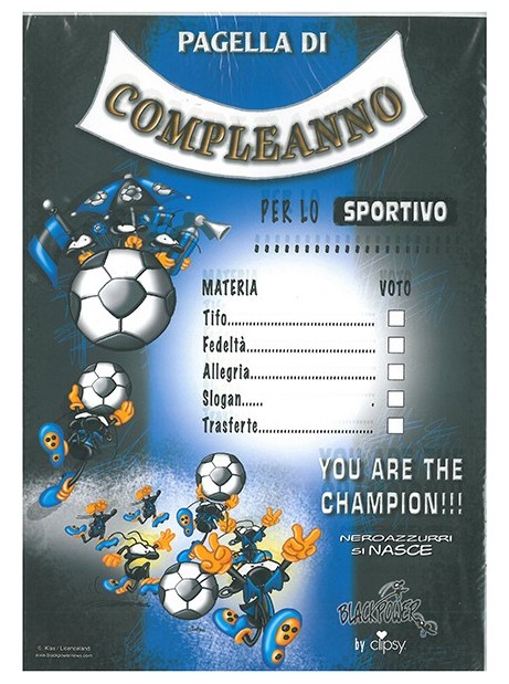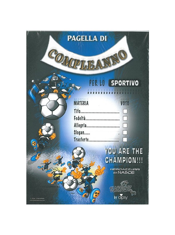 PAGELLA DI COMPLEANNO PER LO SPORTIVO INTER 29,5x21cm + BUSTA