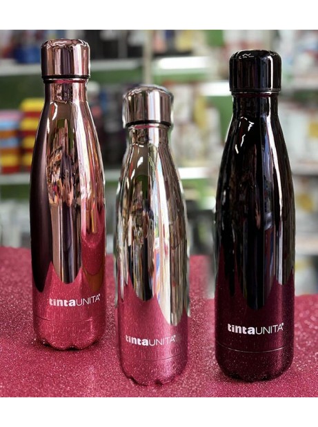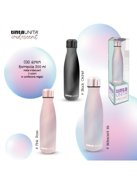 Borraccia 500ml Tinta Unita Iridescent Alluminio Termica Metallo, colori iridescenti, riflessi mobili e cangianti nelle varianti nero lucido, pink - rosa e silver argento