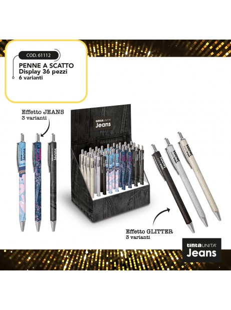 Penna a scatto Tinta Unita Jeans 2024 fusto effetto jeans o glitter