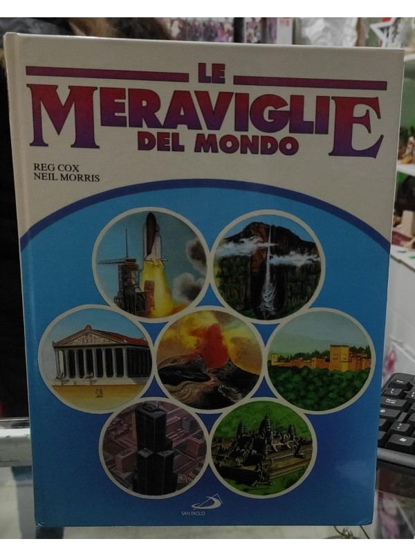 Libro da 128 pagine con ricche descrizioni e fantastiche illustrazioni, cartoline e fotografie delle meraviglie del mondo antico, medievale, moderno e della natura.