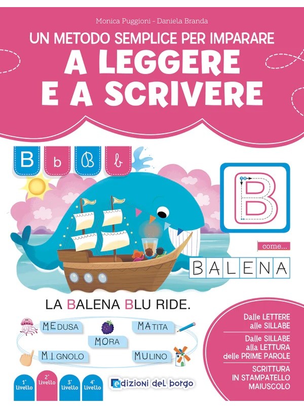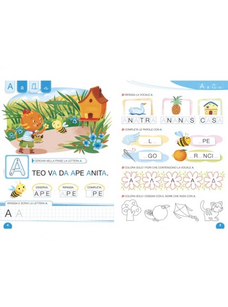 Tante attività legate al suono delle lettere, alla scrittura del segno grafico che le rappresenta, alla formazione delle sillabe, fino alla scrittura delle prime parole. Un vero e proprio metodo di apprendimento della lettura e della scrittura della lingua italiana.