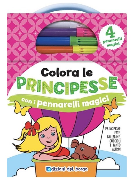 Un kit irresistibile composto da 144 pagine da colorare secondo i modelli o a piacimento, e 4 pennarelli magici: il pennarello bianco, passato sul tratto degli altri, farà comparire il nuovo colore indicato sul tappo.