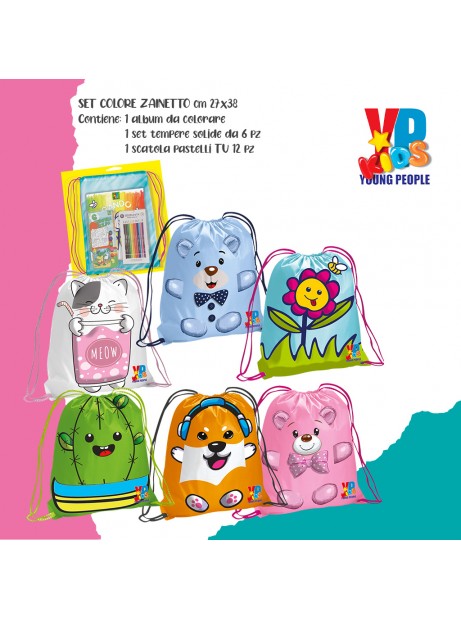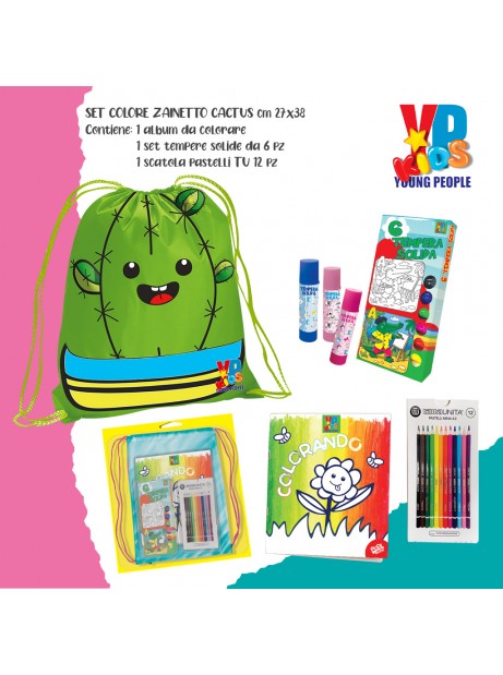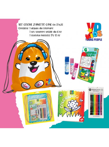 Set da colorare Young People Kids, Sacca con pastelli a matita + tempera solida + album da colorare